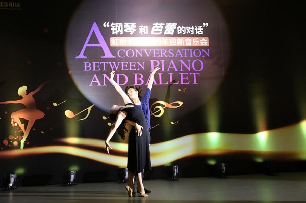 A special performance entitled A Conversation between Piano and Ballet brings passengers both auditory and visual enjoyment through "dancing musical poems" on Dec 20. [Photo by Wang Bingyi/Shanghai Airport Authority]