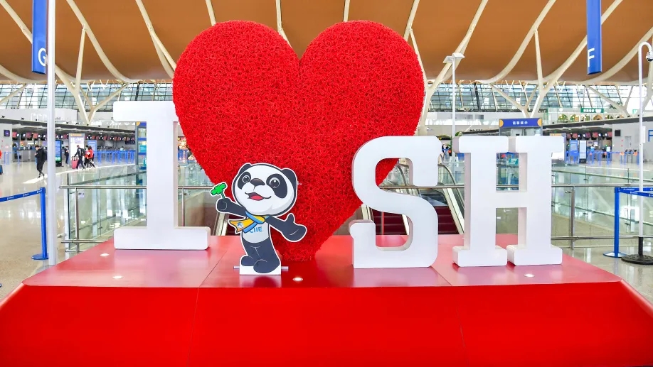 The Pudong airport has set up many points highlighting CIIE elements in Terminal 2, which is the busiest terminal. Passengers can take WeChat Moments photos against the backgrounds. The airport has also organized traditional Chinese cultural performances to promote the expo.