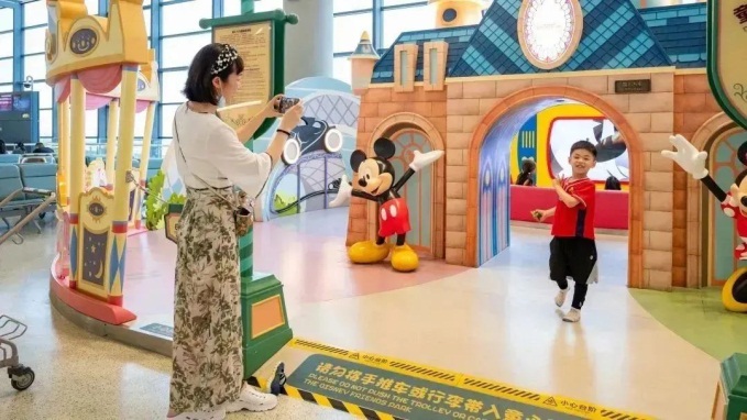 To make flying easier for children, the airports have assigned special staff to escort children who fly alone. Both airports are being equipped with baby care rooms with various facilities. In addition, Pudong Airport is giving souvenirs to kids and Hongqiao Airport has set up three children's playgrounds at its terminals.