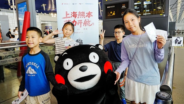 The launch ceremony was held at Terminal 1 of Pudong Airport. Adding a touch of charm to the event, Kumamon, the beloved mascot of Kumamoto city, engaged with passengers embarking on the first flight.