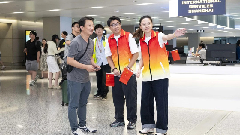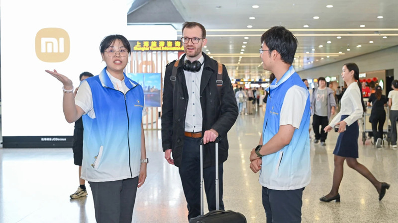 Shanghai Pudong International Airport and Shanghai Hongqiao International Airport launched a 156-member youth language volunteer team on Oct 1 to assist inbound international travelers, serving over 540 people on the first day.