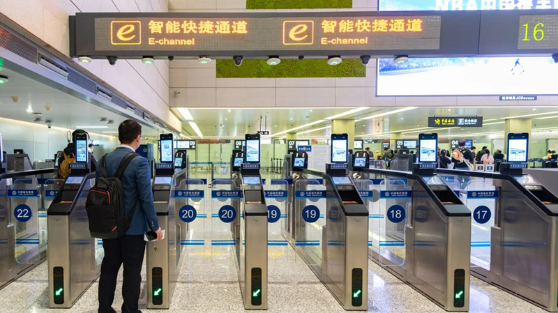 Passengers use the facial recognition e-channel at Shanghai Hongqiao International Airport for fast border clearance. [Photo/WeChat account of AVINEX]