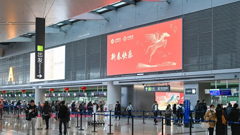 Cultural exhibitions have been staged in both terminals, including Year of the Horse-themed art displays and folk customs showcases. These exhibitions will run until May, highlighting traditional culture and Shanghai's distinctive urban character.