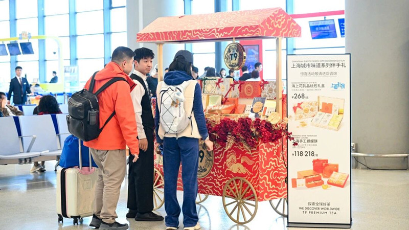Shanghai Hongqiao International Airport created a strong Spring Festival atmosphere this year, integrating culture, commerce, and tourism to enrich travel experiences, with themed decorations and cultural events welcoming domestic and international passengers.