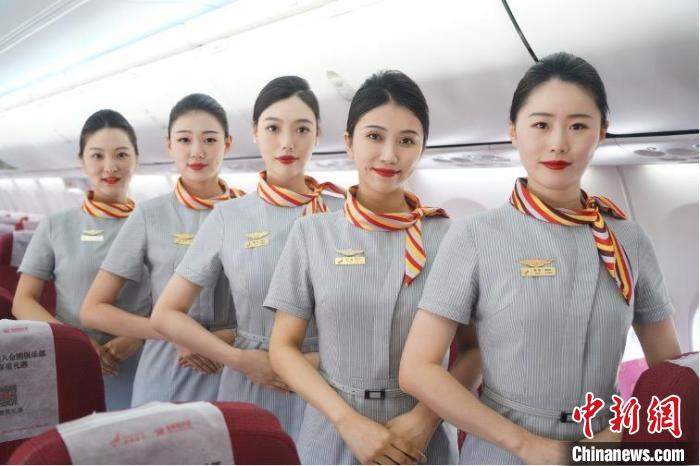 金鹏航空乘务员在客舱中迎接旅客的到来。 金鹏航空供图