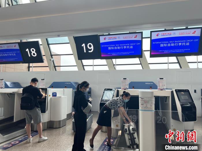 工作人员引导旅客前往柜台办理登机手续。 上海机场集团供图