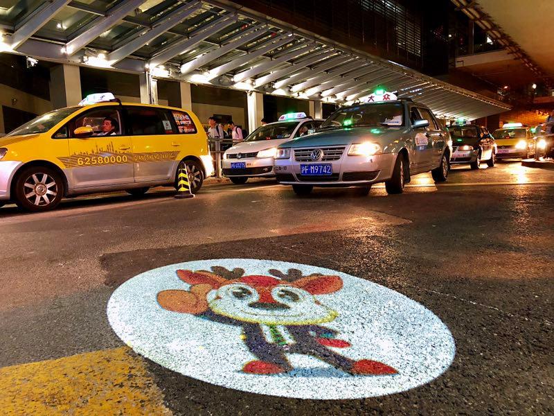 为提升旅客体验,此次改造尤重细节。如针对主调区域的防滑改造,交通管理部结合“零缺陷课题研究”,设置了伸缩式拉道栏杆与防滑槽,以保障旅客行走与行李安全方便;排队系统中增设的33盏泛光灯与128个小射灯,经人身体验和反复比对,照度被控制在150勒克斯(照明单位)这一舒适点;考虑到晚间清晰度,施工中特别提亮了车位标识,以降低旅客错位可能性,并在每个车位安装投射灯,旋转变幻的吉祥物“路路”让候车氛围更温馨。此外,T2大巴站点还专门设置了贵宾等候区,摆放了花箱,放置了座椅,增加了照明,更新了信息显示灯箱,还铺设地毯。此处将是进口博览会期间各地嘉宾小憩候车的主要区域。