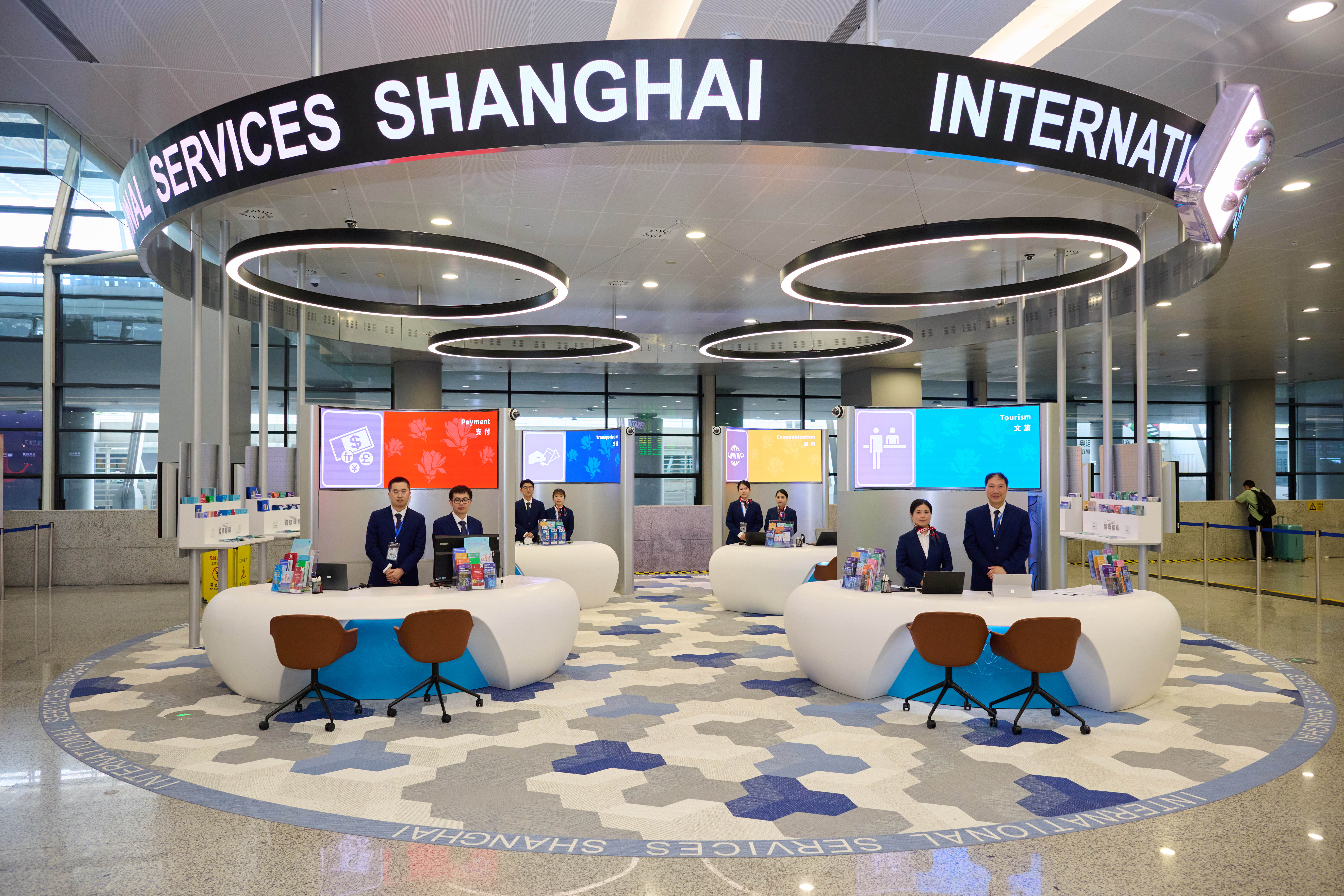 6月29日,浦东国际机场启用外籍人员一站式综合服务中心,按照支付、文旅、通信、交通四大模块功能,为入境国际旅客提供入境服务指南、《外籍人员在沪服务手册》、旅游地图、WIFI设备租赁、手机SIM卡销售、交通卡销售、外币兑换、零钱包兑换、移动支付及人工咨询等综合性全天候服务,打通外籍人员来华经商、学习、旅游的堵点。