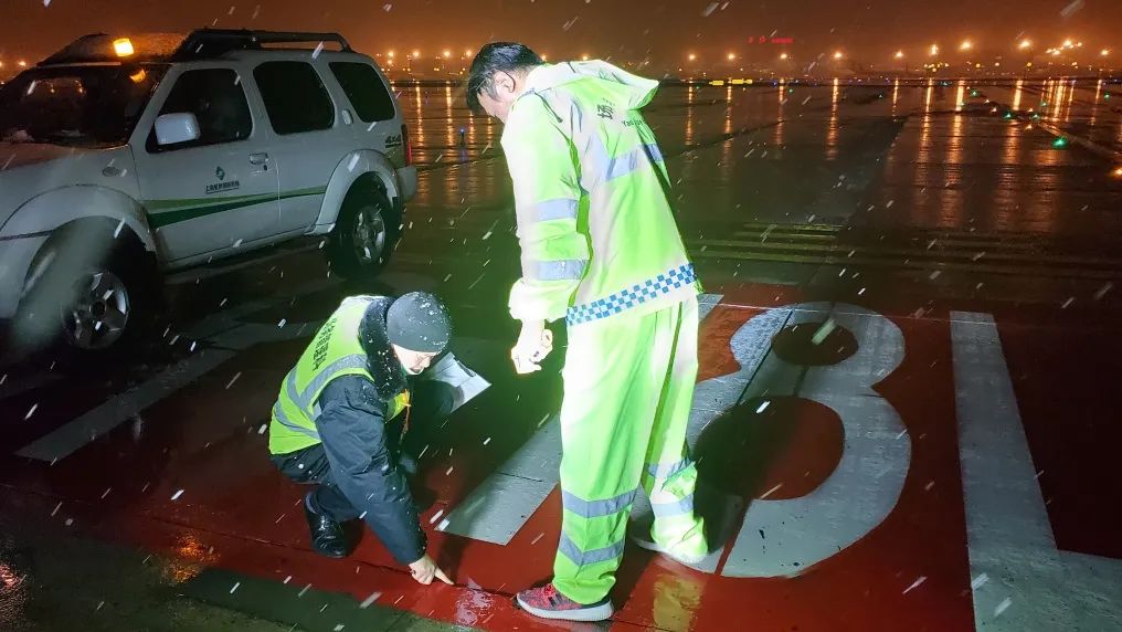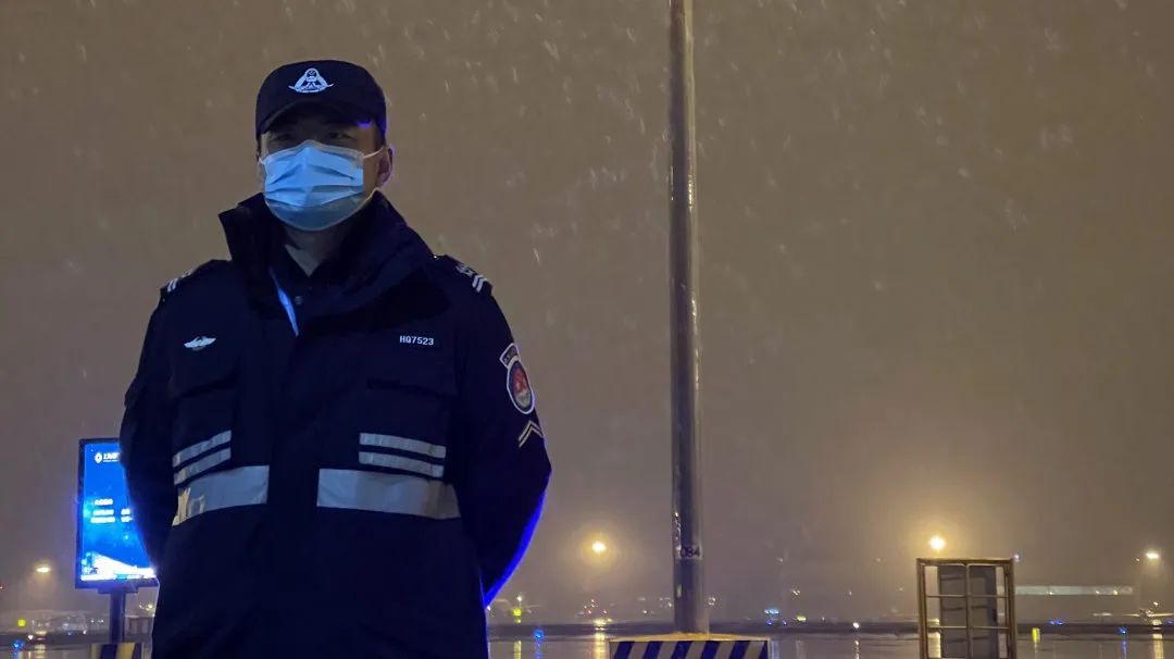 航空器监护员在风雪中坚守岗位,一站就是1个小时,严守空防安全。机坪场道巡视员在接近零度的气温中认真开展场道巡检,不放过任何一个安全隐患。航站楼内,针对易受机坪冷空气影响的远机位候机区,采取了适当调高室内温度的措施,确保旅客舒适候机。洗手间和饮水机设备做到24小时热水供应。