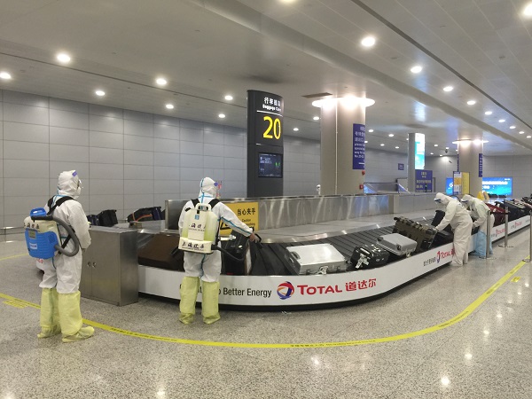 刘英带领的浦东机场消毒团队是这样一群人,工作时间大部分都在凌晨航班结束后;他们是这样的装扮,一身密不透风的全身防护服及装备;他们不是空手而行,每次都需要身背着近30斤重装满消毒液的消毒器材;他们作业时间很长,每天都24小时备勤、蹲守,随时赶赴现场开展消毒处置,每次作业近1个小时,一身大汗。随着疫情防控常态化和暑季高温的到来,每一次他们都是全身湿透。负责全面预防性消毒面积134万平方米,遍布浦东机场两座航站楼、卫星厅等公共区域。针对入境航班旅客途经区域(包括旅客经停登机口、廊桥及通道等、行李分检区或行李转盘以及行李、集中隔离人员行至运送摆渡车的途经区域),消毒团队实施疫情防控全路径终末消毒处置。