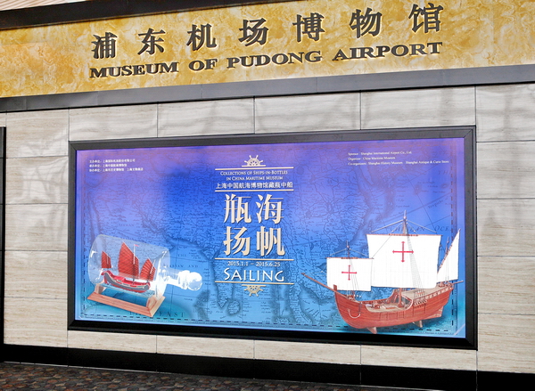 2015年浦东机场博物馆新展正式亮相。“瓶海扬帆——上海中国航海博物馆藏瓶中船”展览在浦东机场博物馆正式开幕,供旅客免费参观。等候航班时,不妨到机场博物馆品鉴航海博物馆珍贵展品。